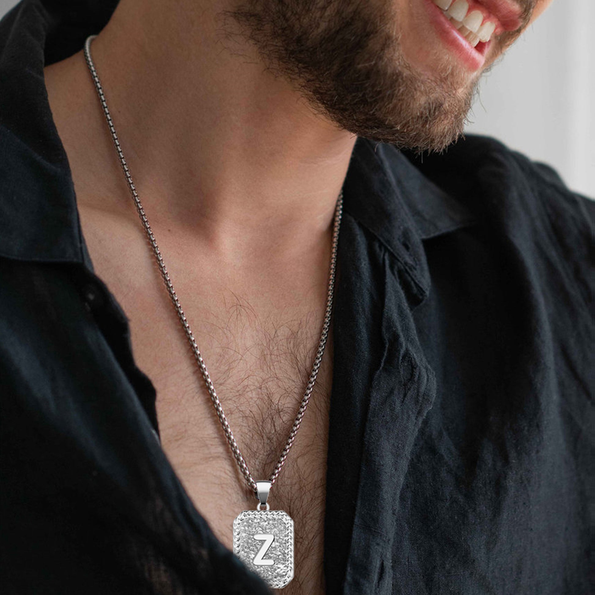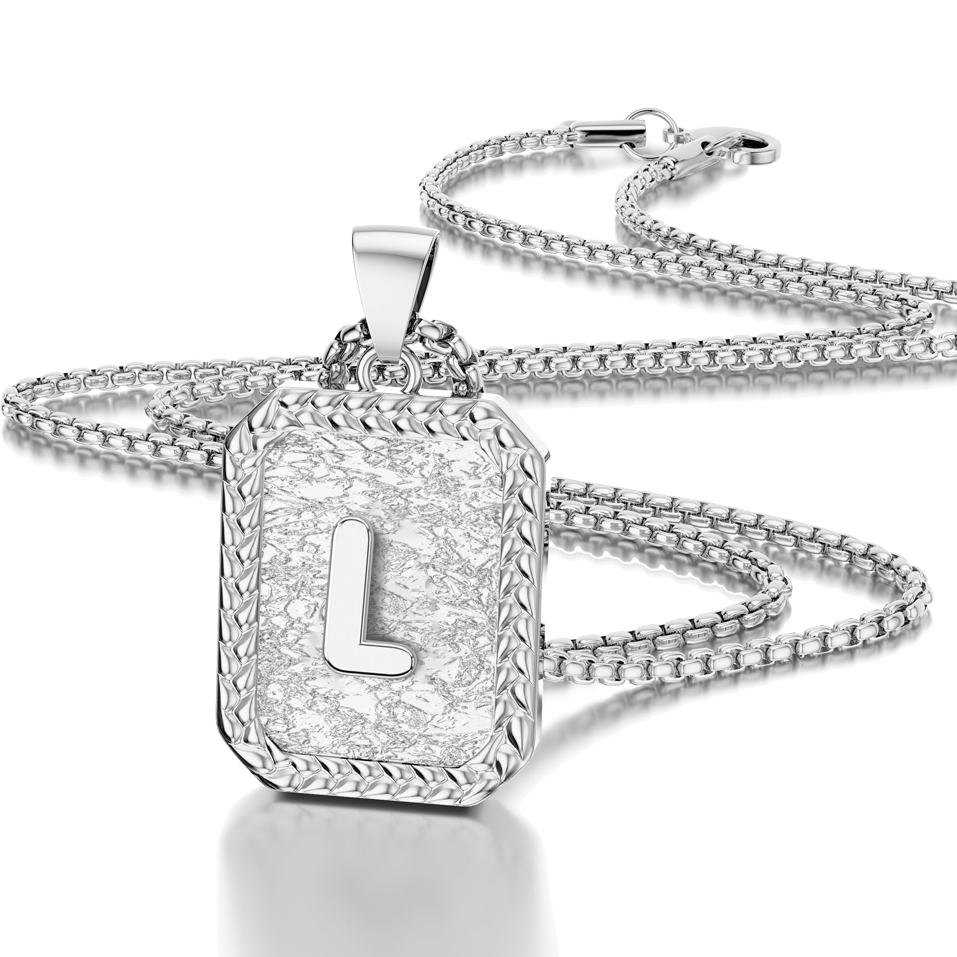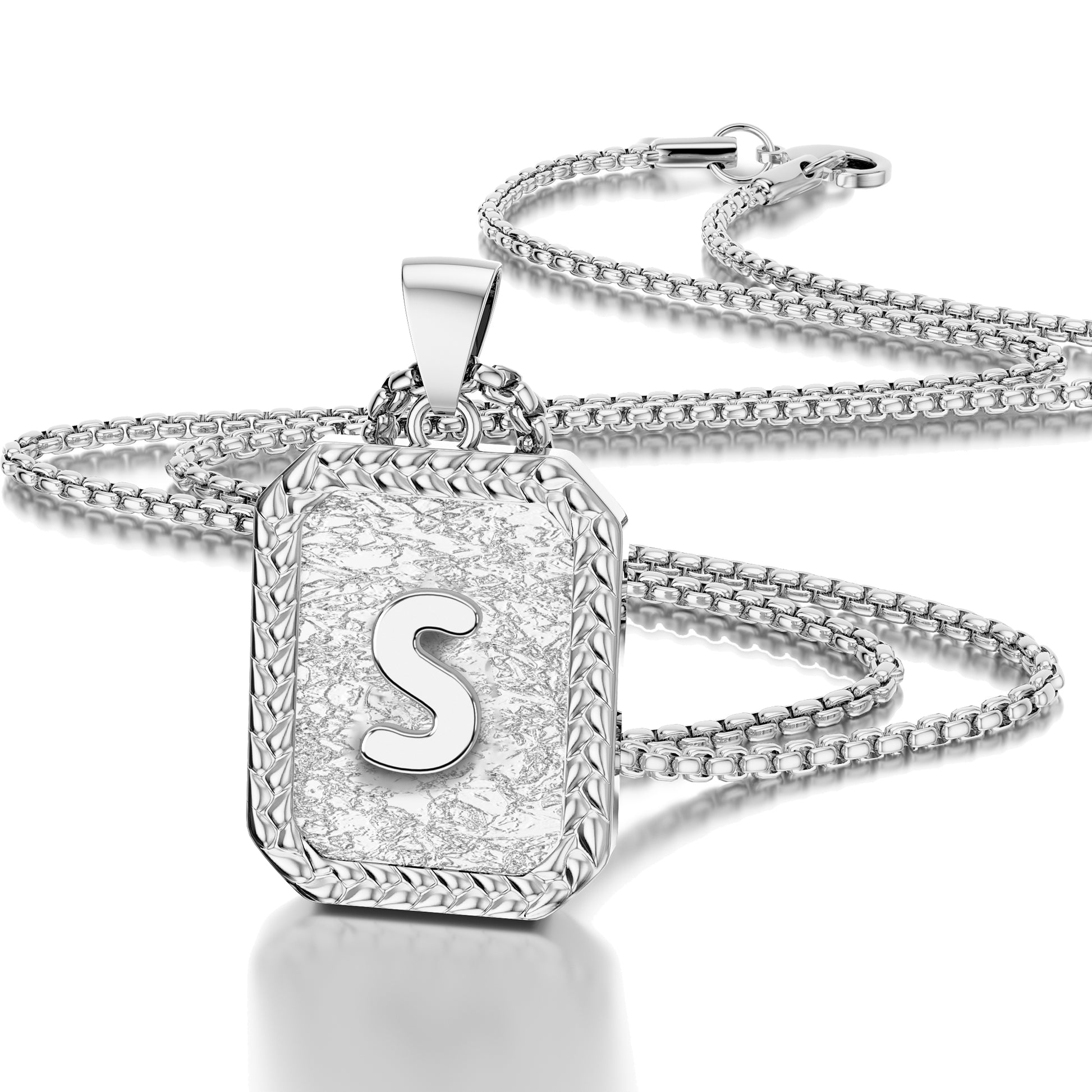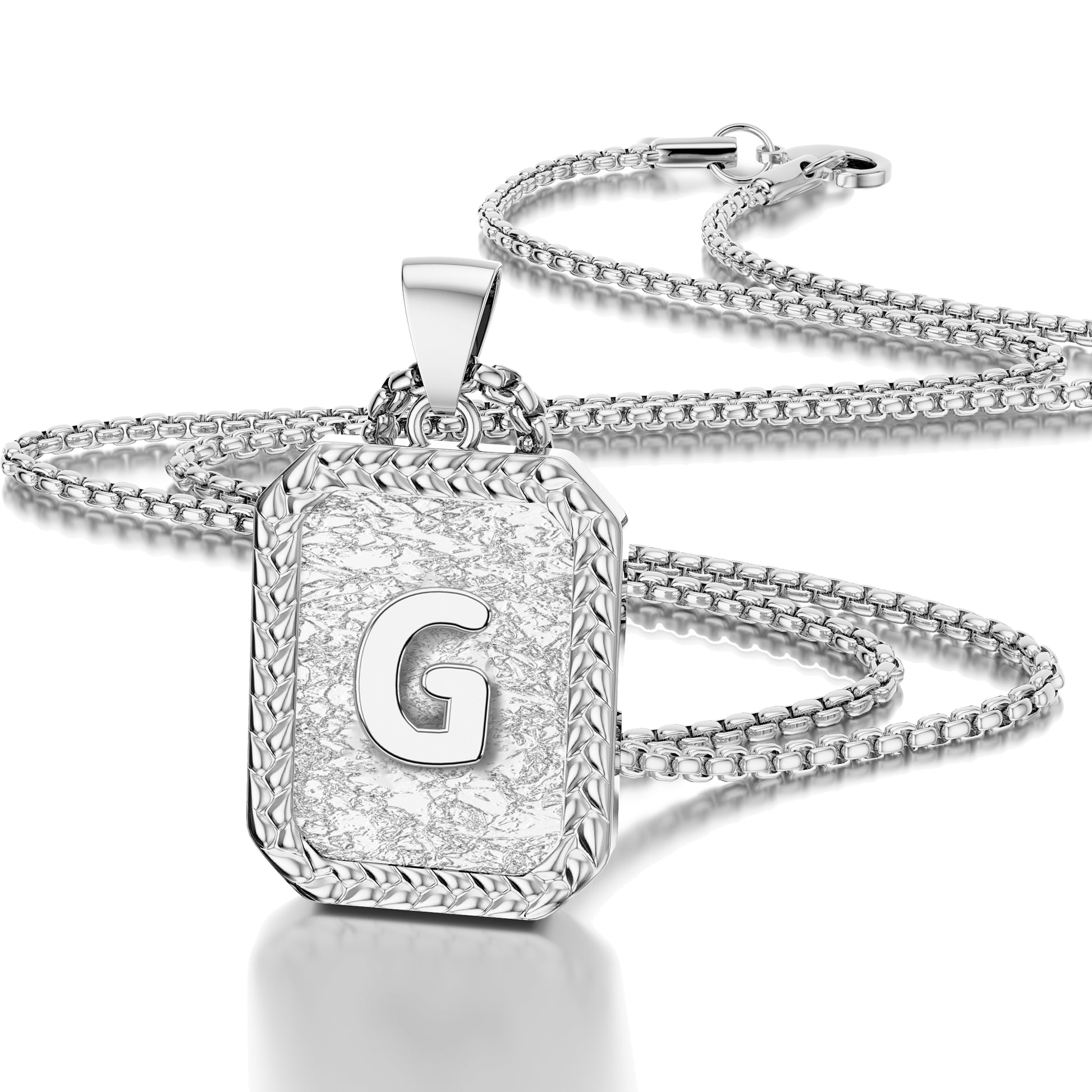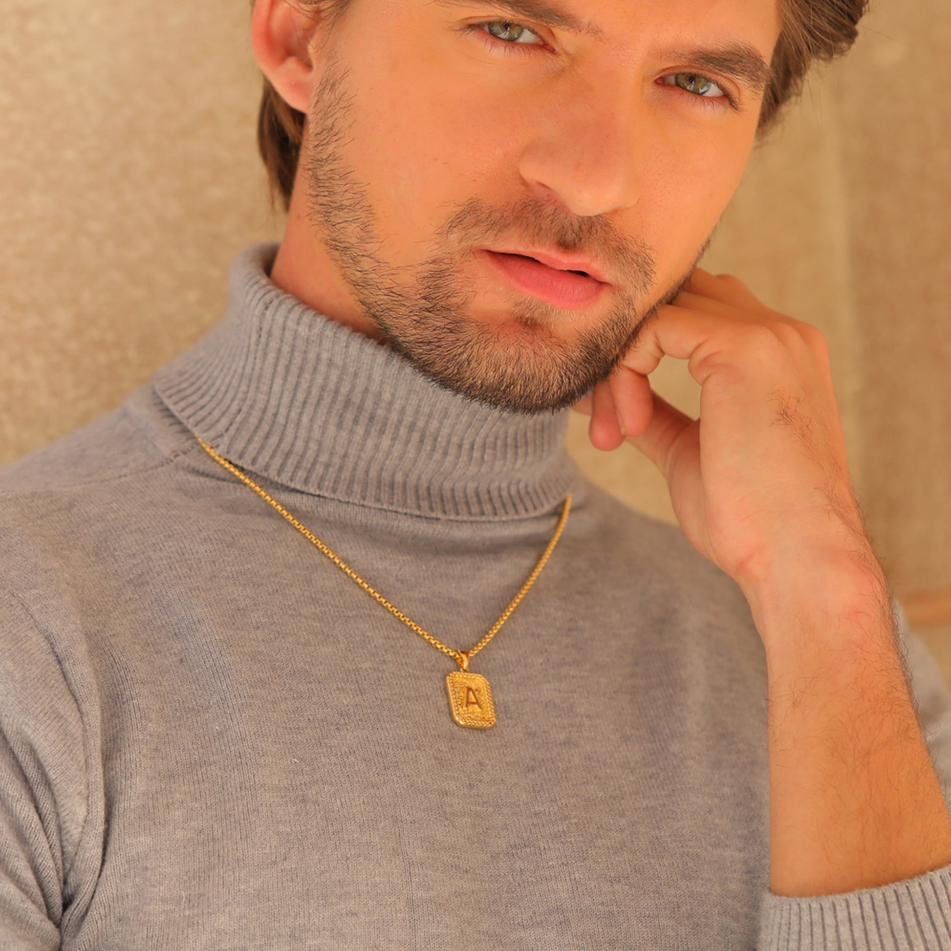 [Size and Material] Box Chain Length: 50.8 centimeters, Width: 2.5 millimeters, Letter Pendant Size: 0.91 inches * 0.71 inches. Men's letter necklace is lead-free and nickel free. The initial necklace is safe and comfortable, non irritating to sensitive skin, and the smooth surface can effectively protect your skin.