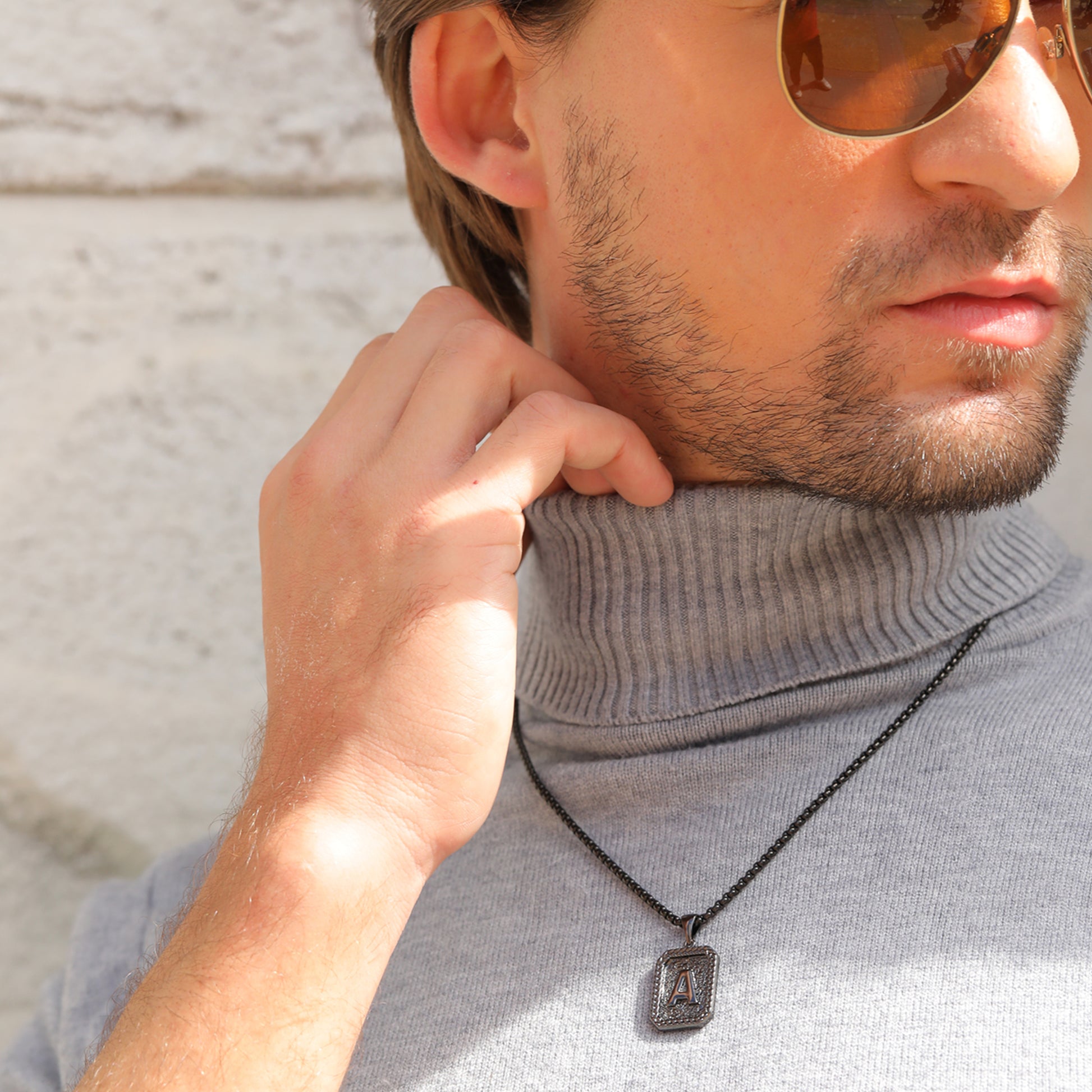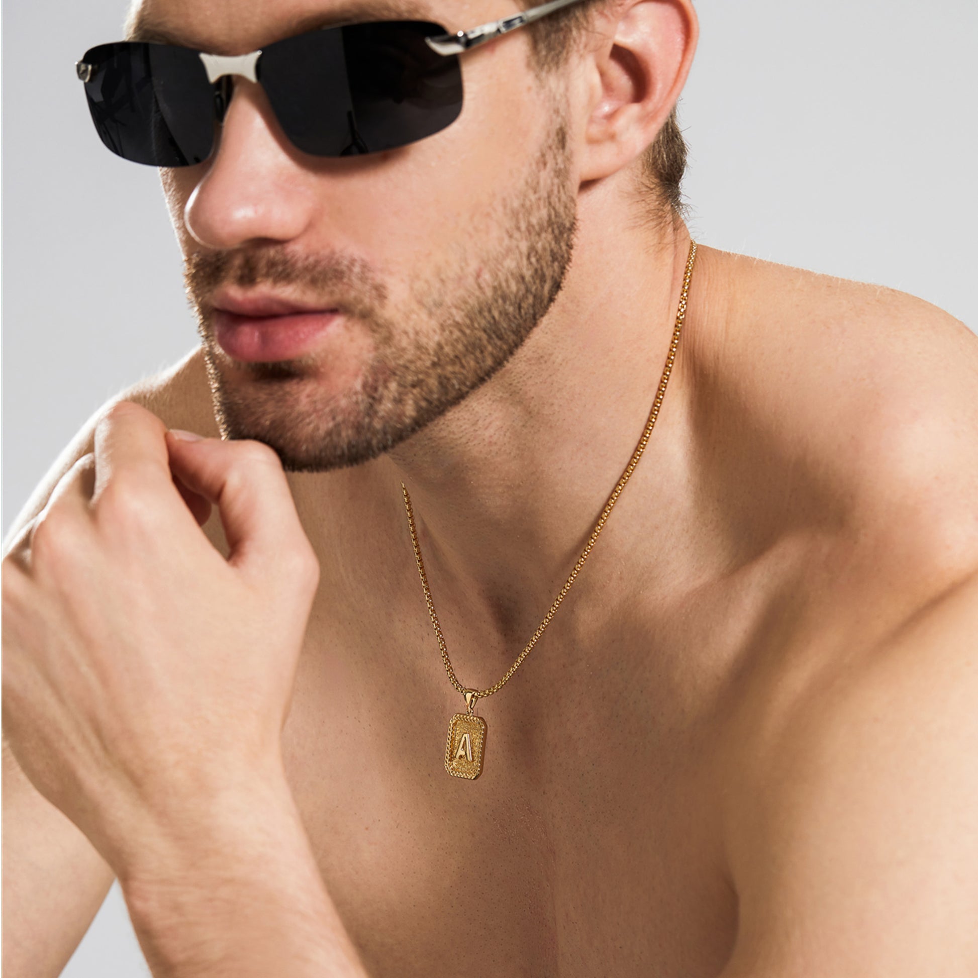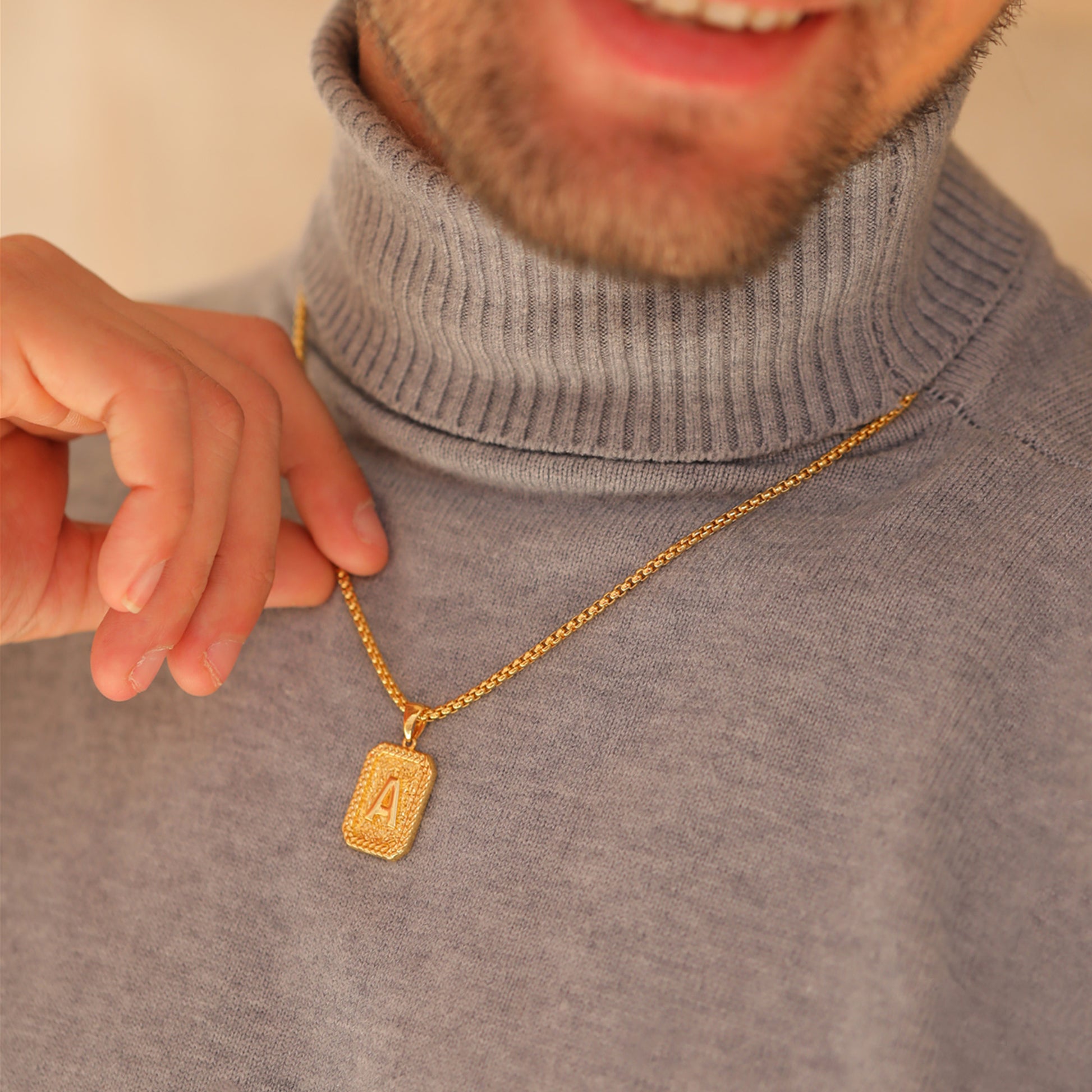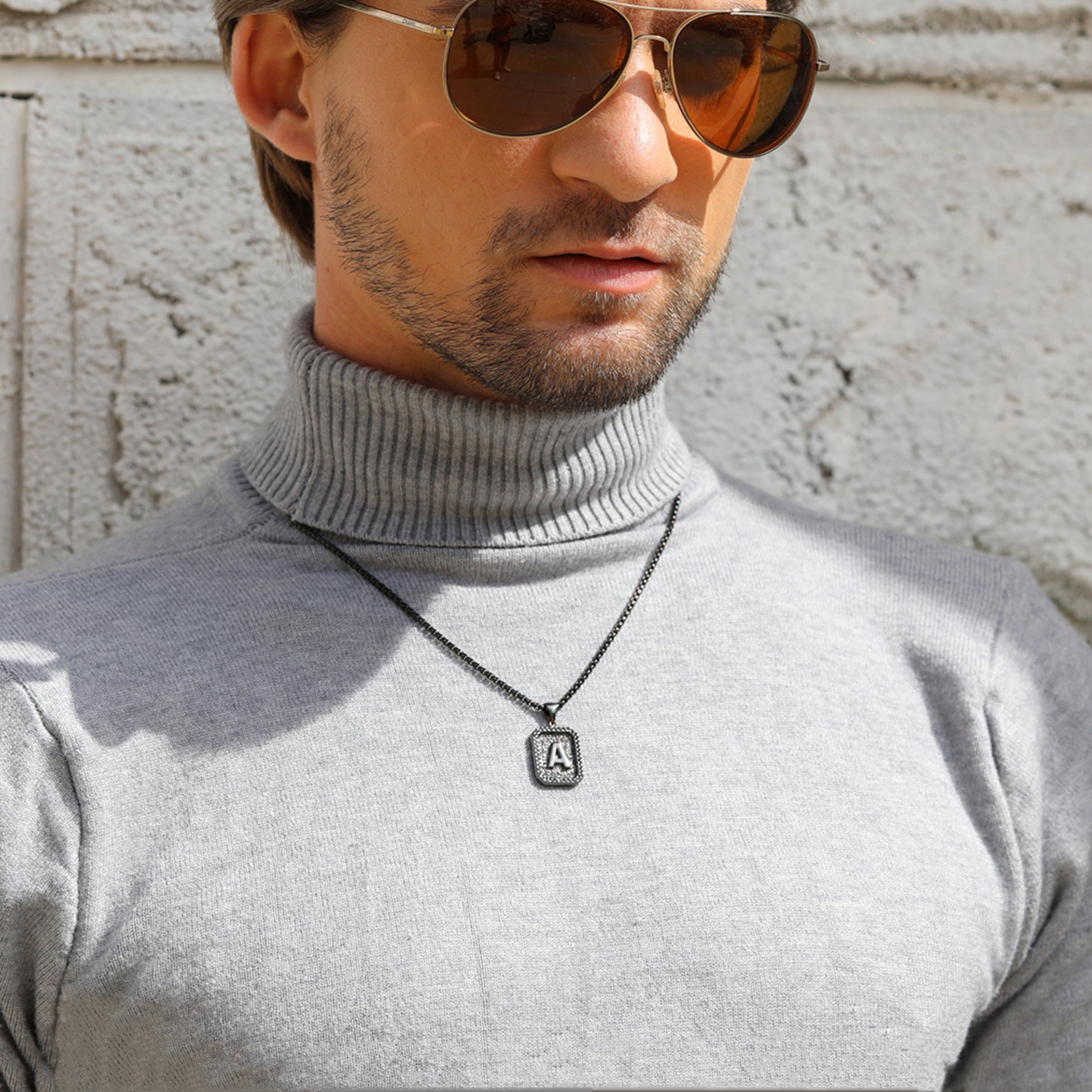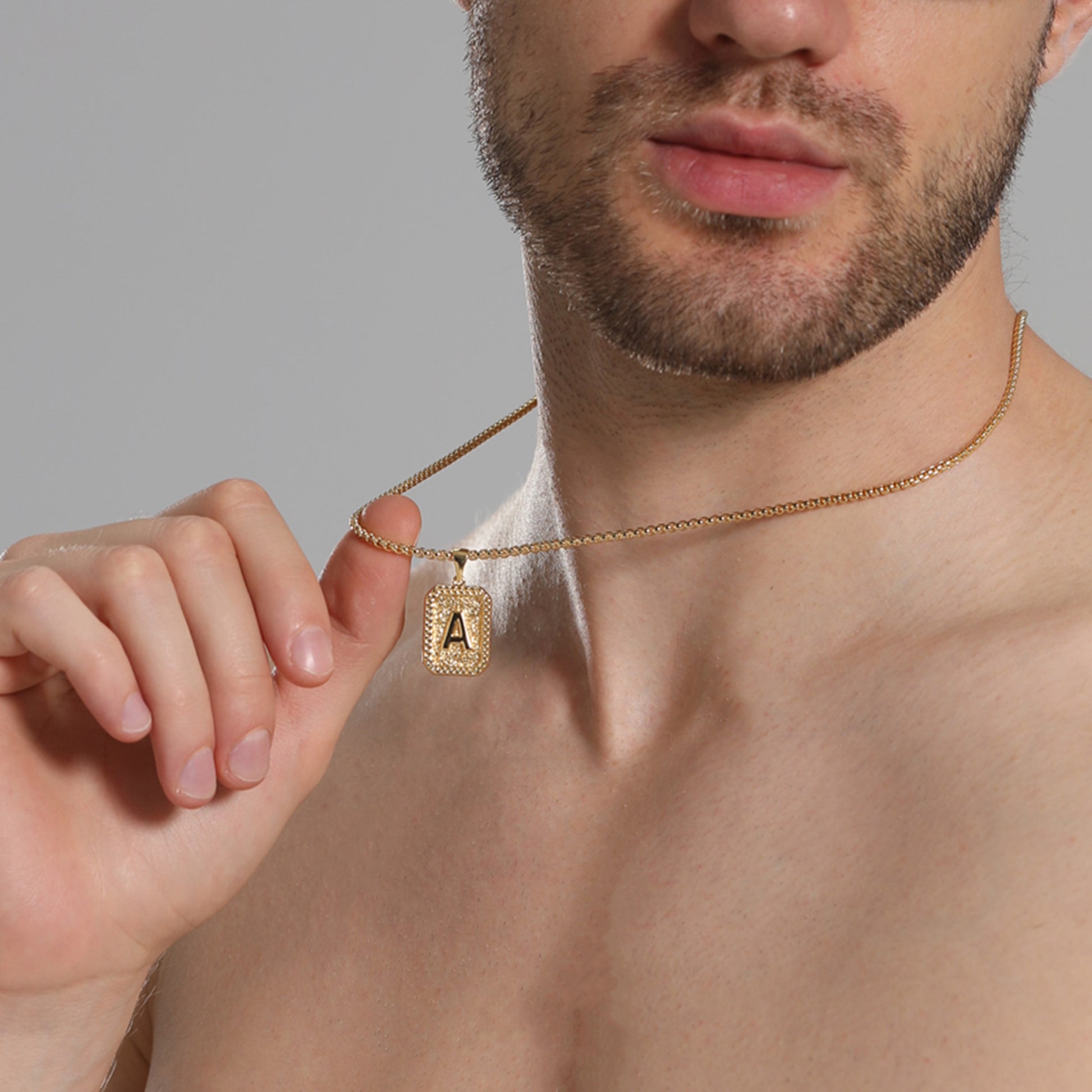 [Size and Material] Box Chain Length: 50.8 centimeters, Width: 2.5 millimeters, Letter Pendant Size: 0.91 inches * 0.71 inches. Men's letter necklace is lead-free and nickel free. The initial necklace is safe and comfortable, non irritating to sensitive skin, and the smooth surface can effectively protect your skin.