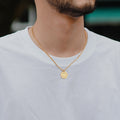 Golden, three to one chain single-layer chain necklace, gold flower shaped letter circular hanging tag, letter necklace