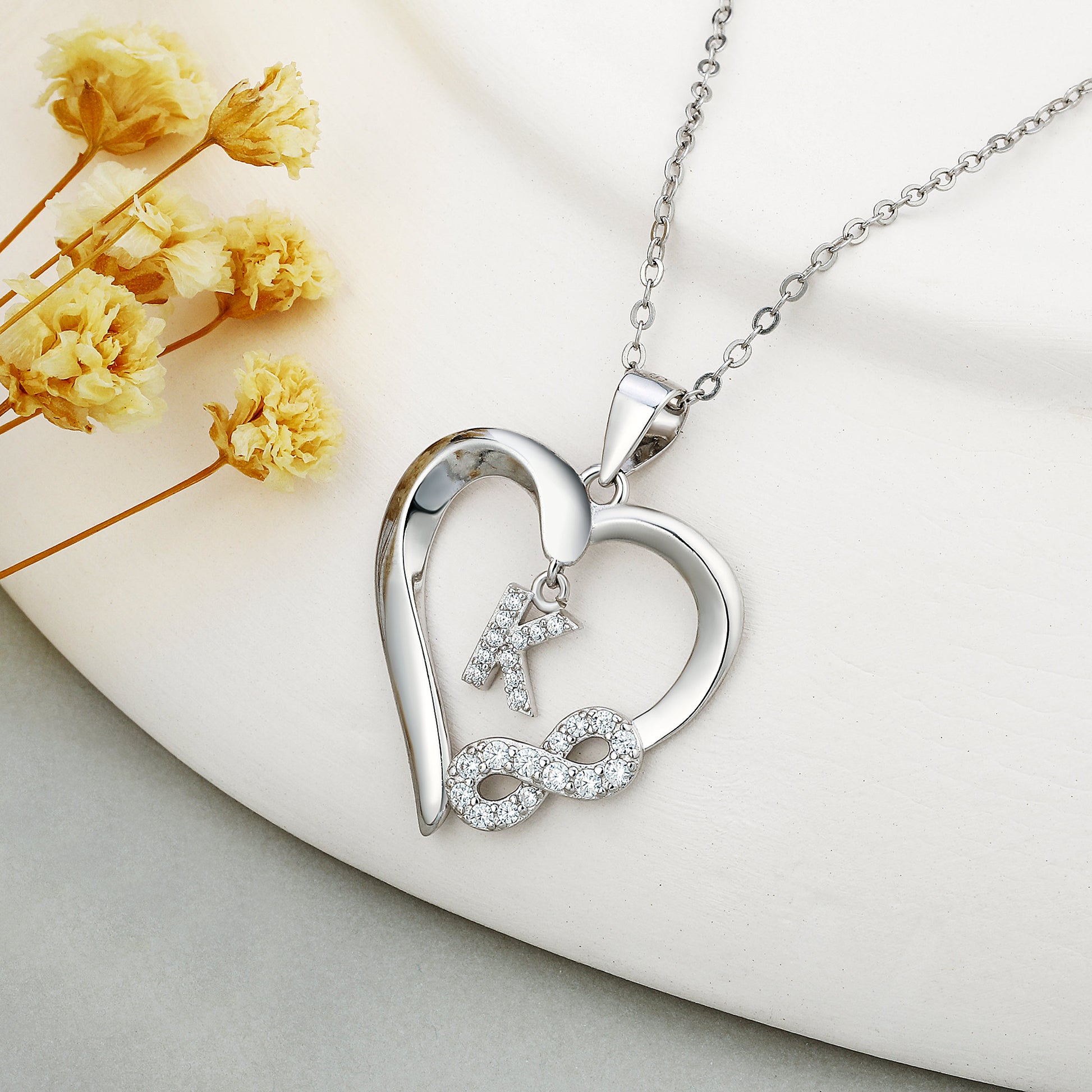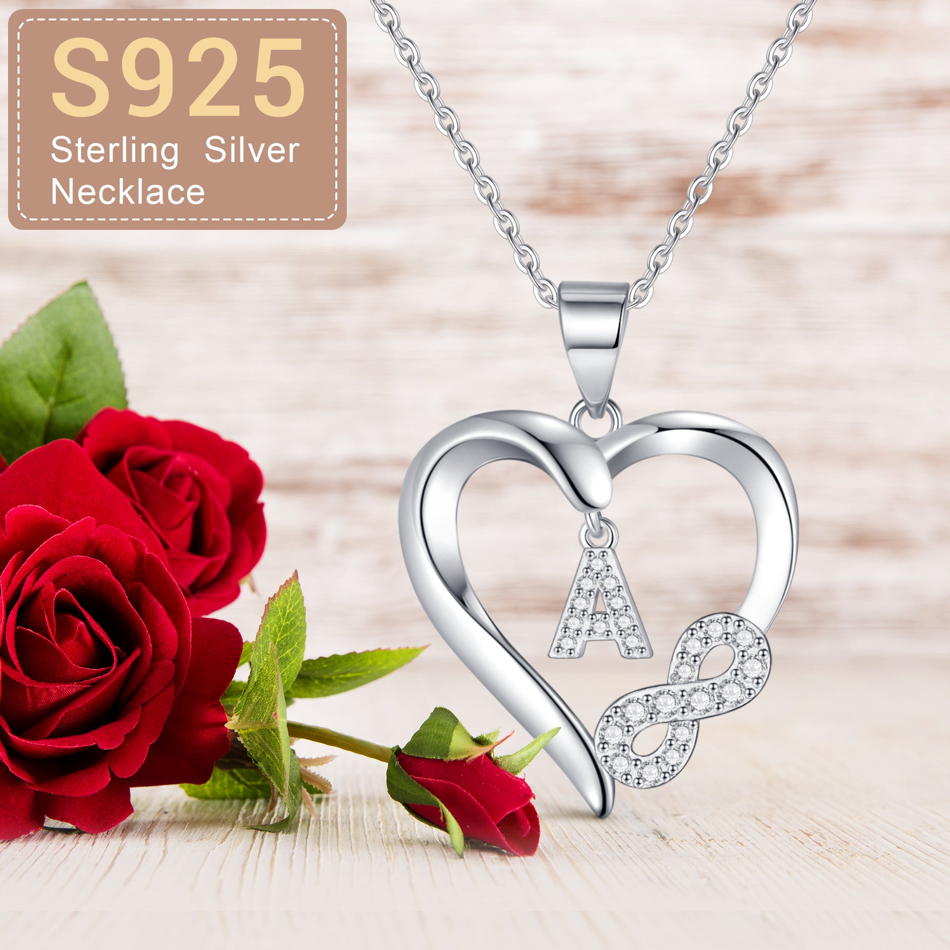 Romavan brand, glossy heart-shaped necklace, capital letter pendant necklace, letters A-Z