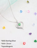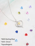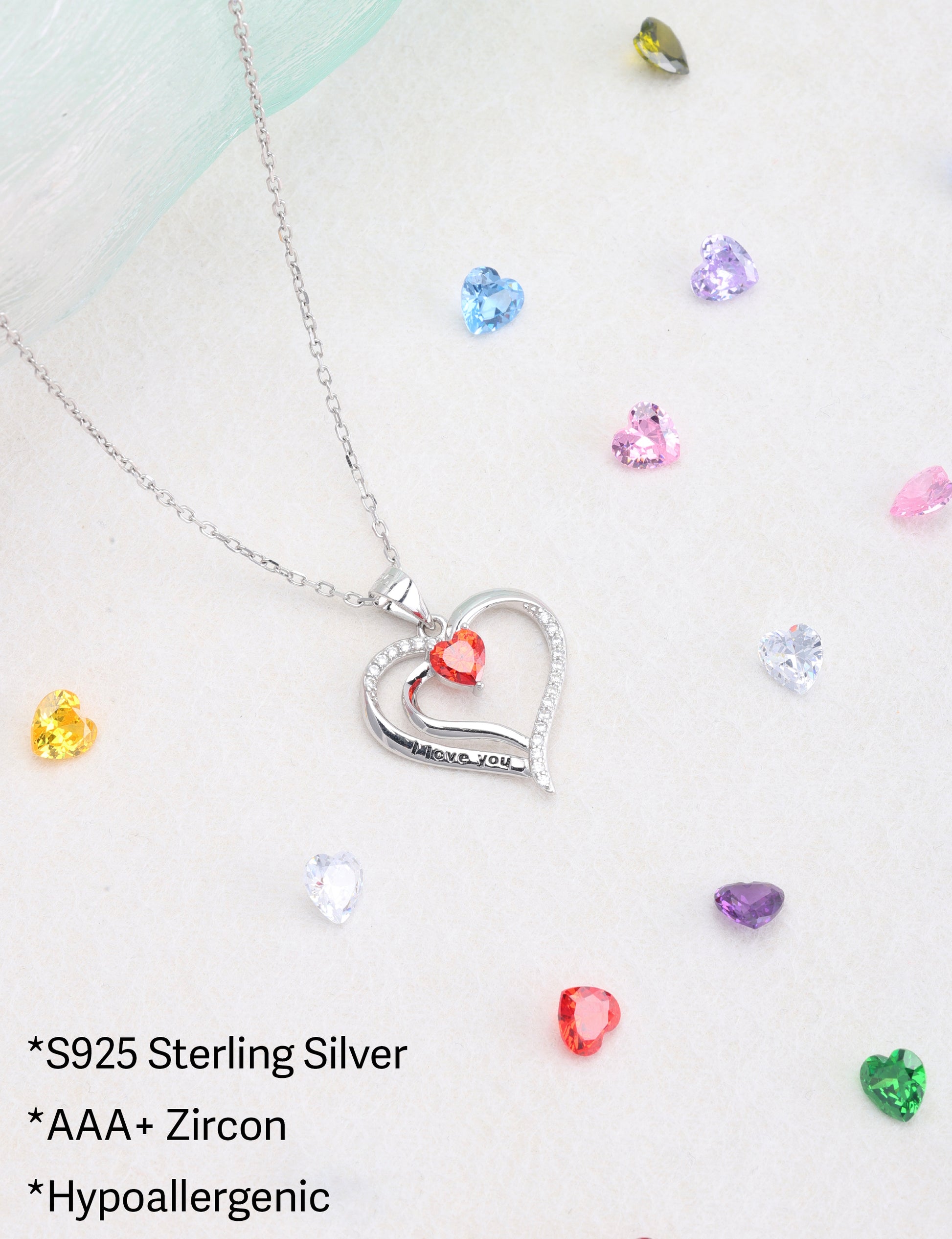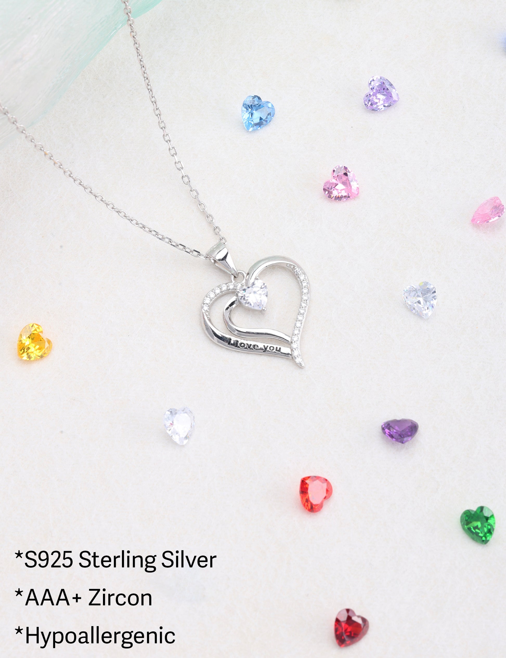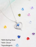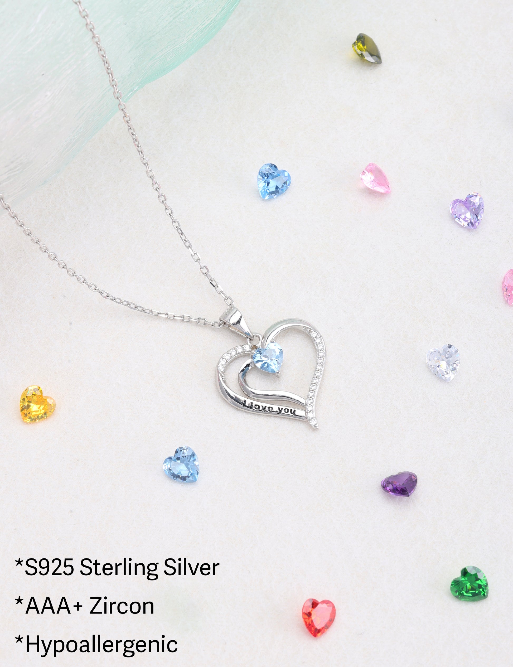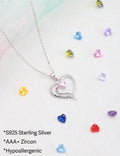 Silvery, double-sided heart-shaped birthstone necklace, S925 silver plated birthstone necklace, suitable for teenage girls, birthday jewelry gift;