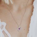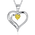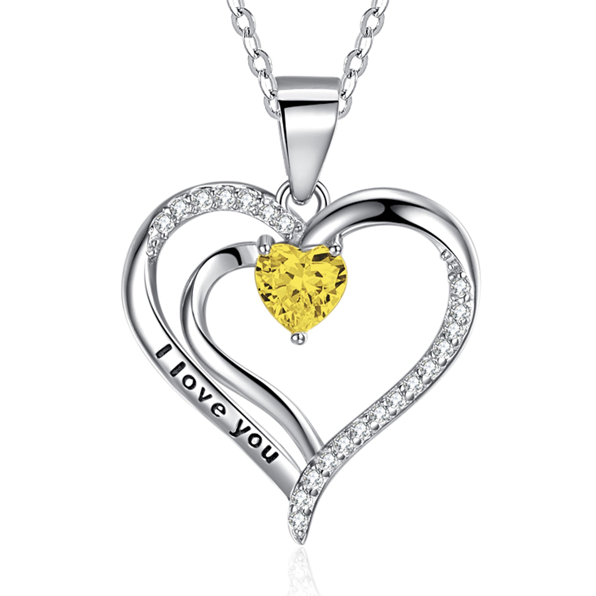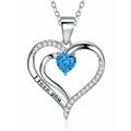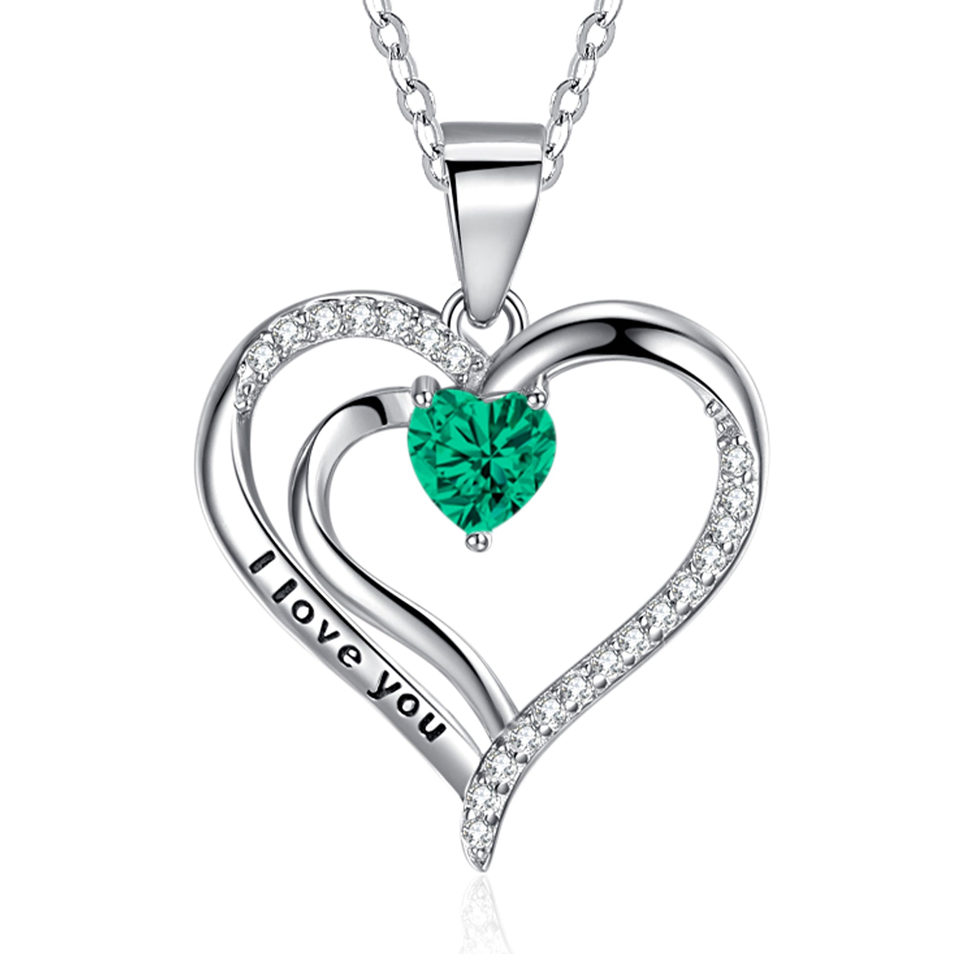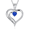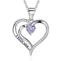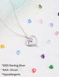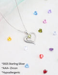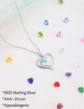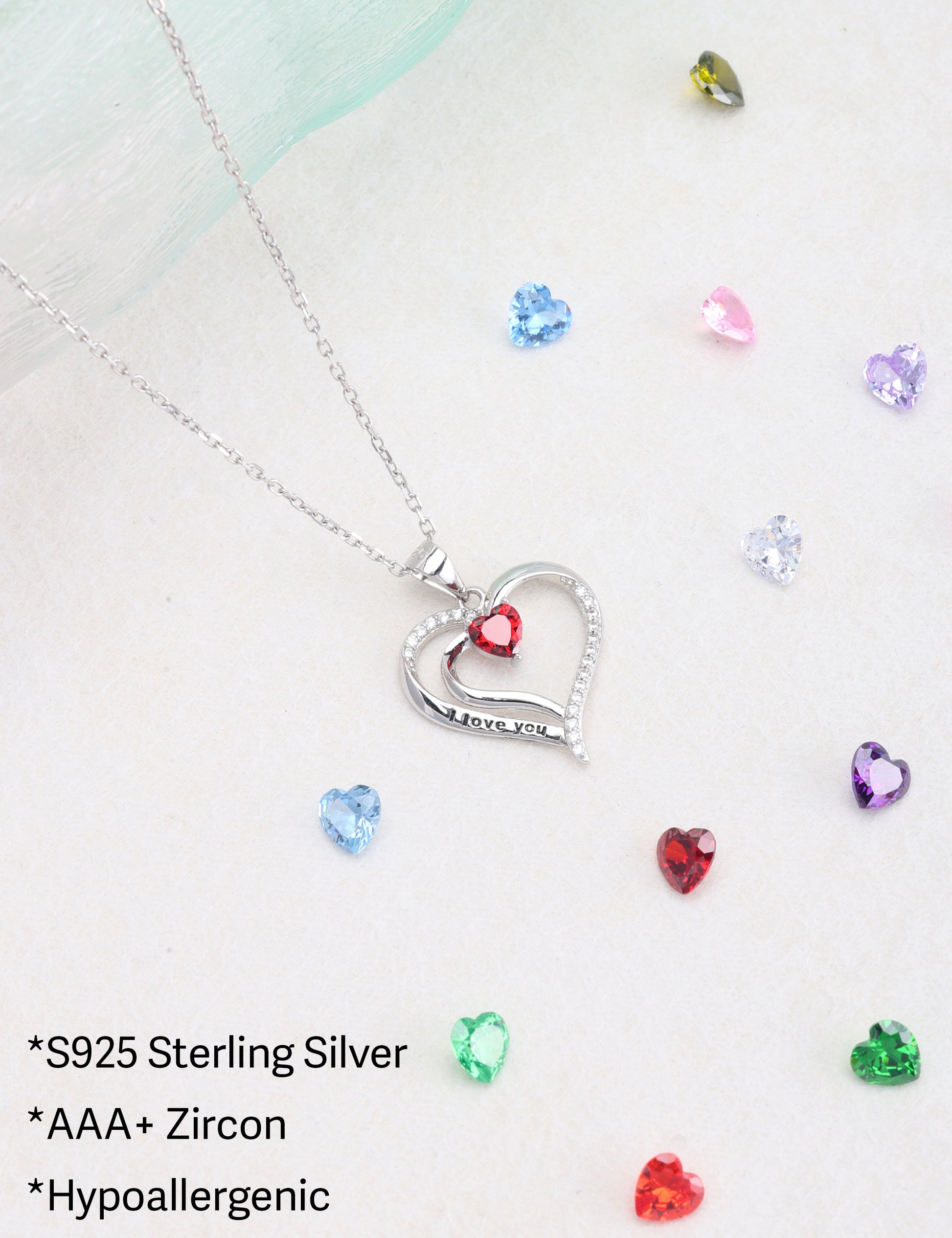 Silvery, double-sided heart-shaped birthstone necklace, S925 silver plated birthstone necklace, suitable for teenage girls, birthday jewelry gift;