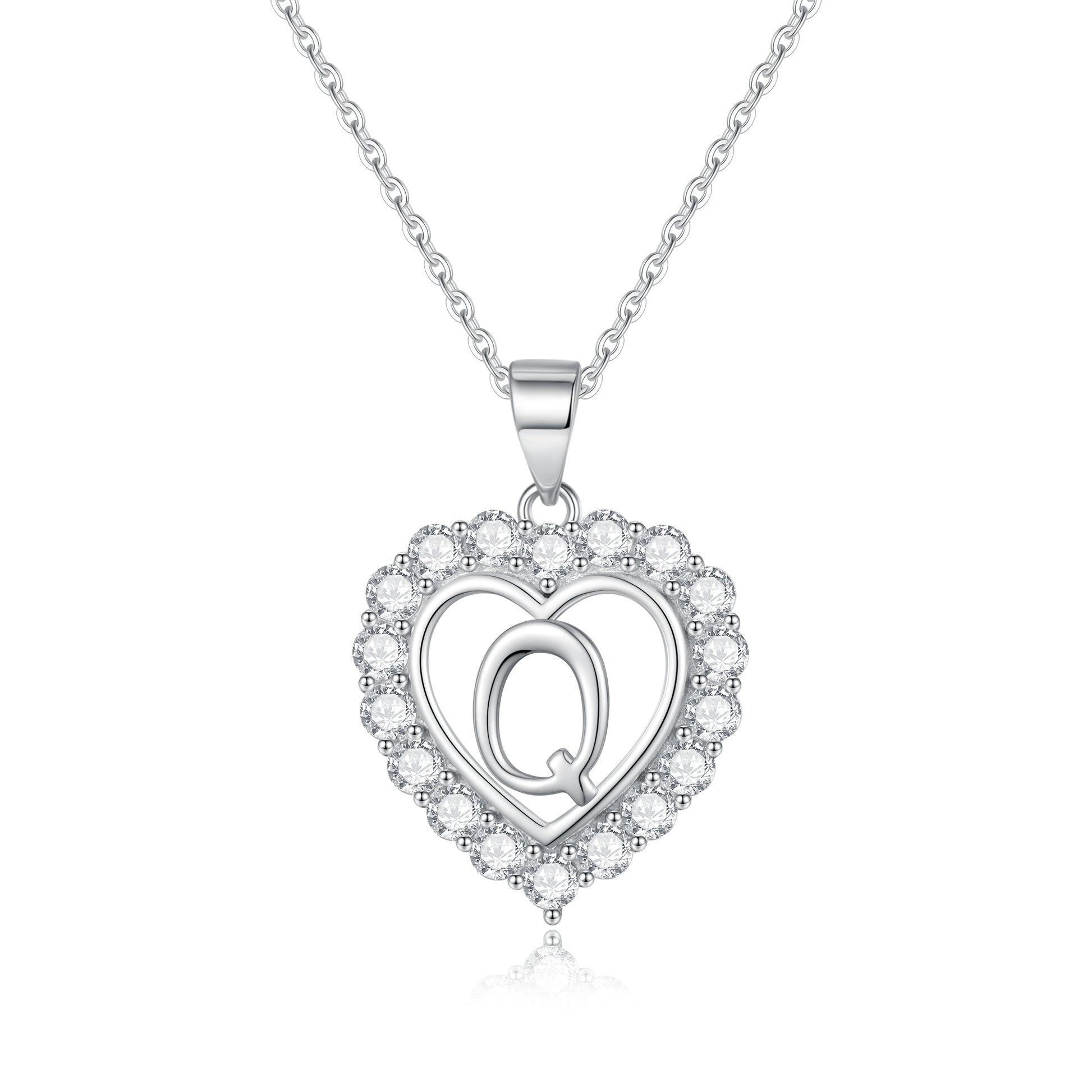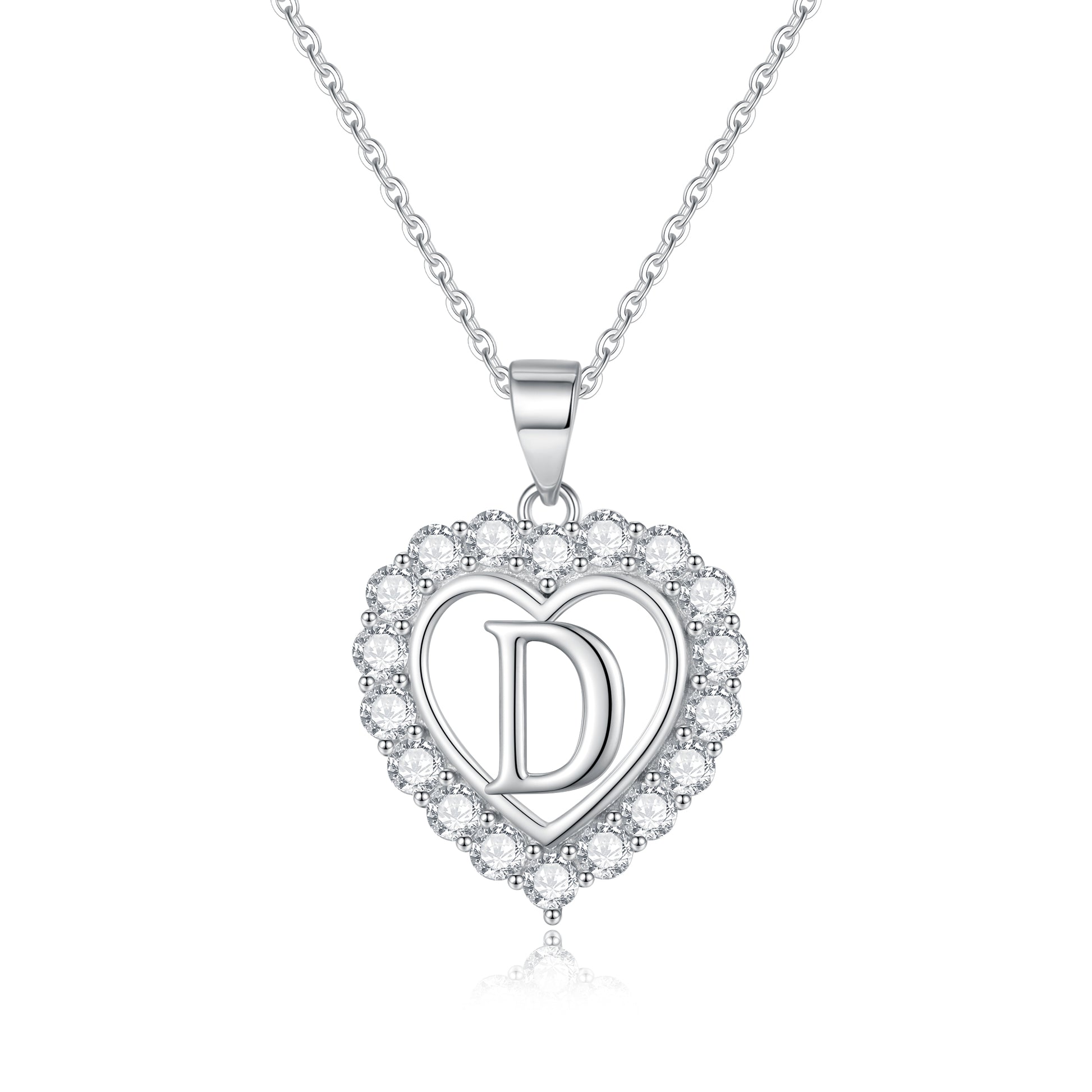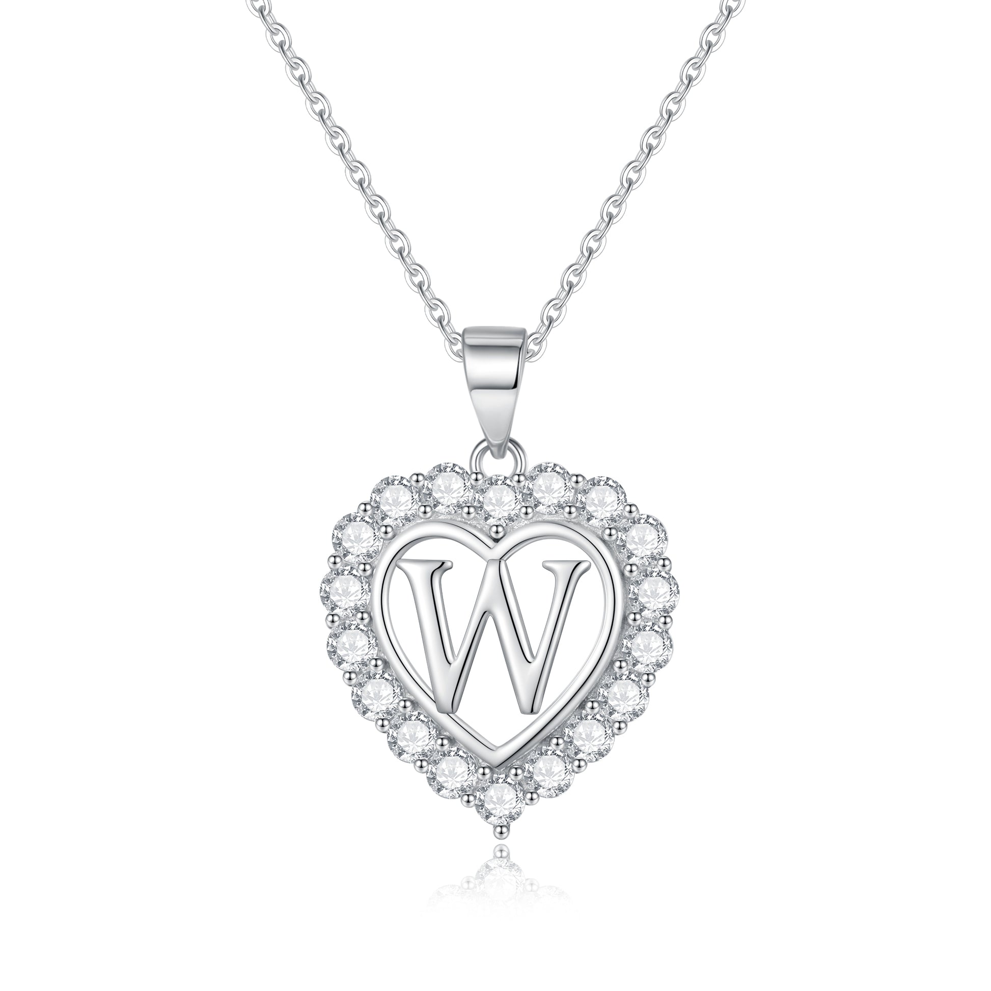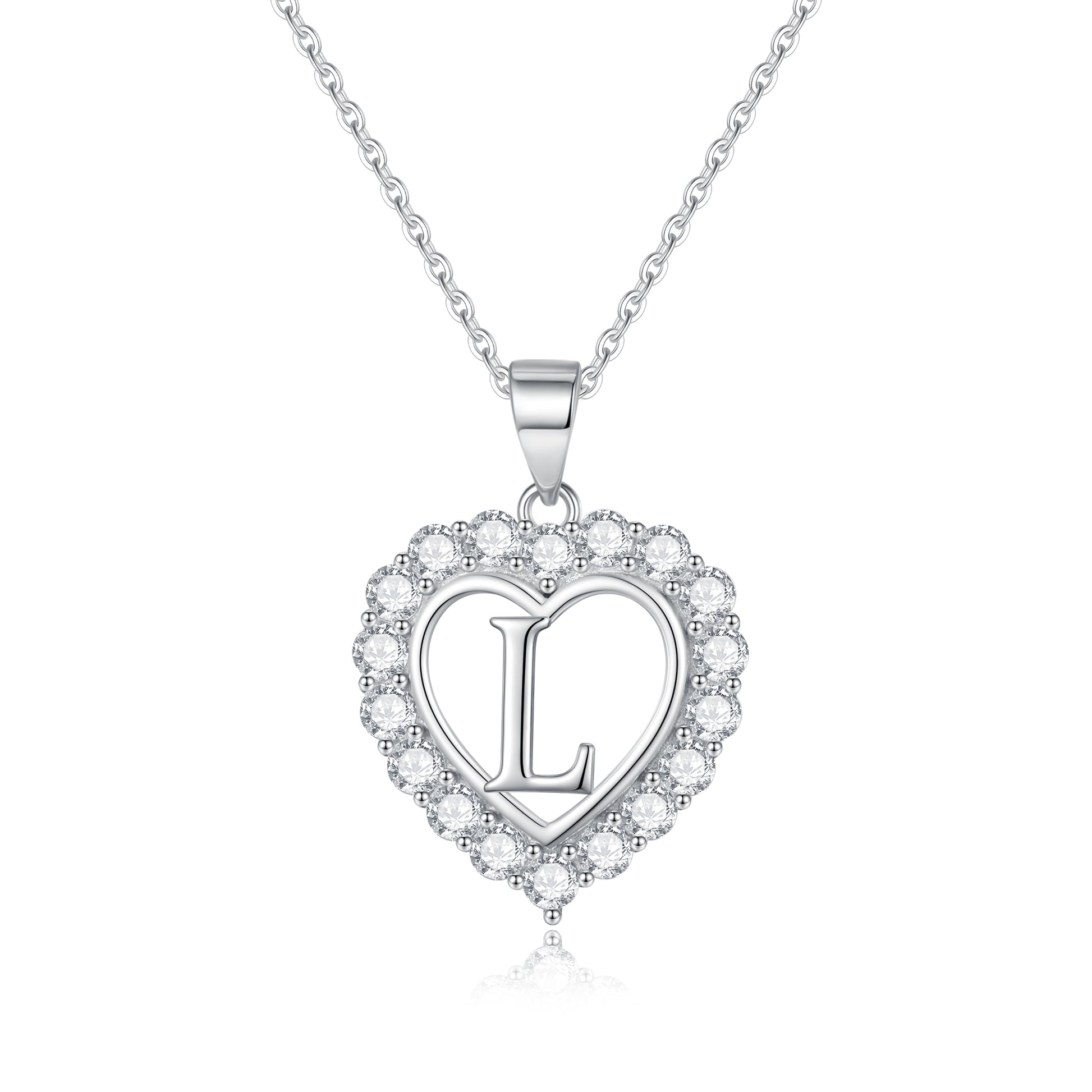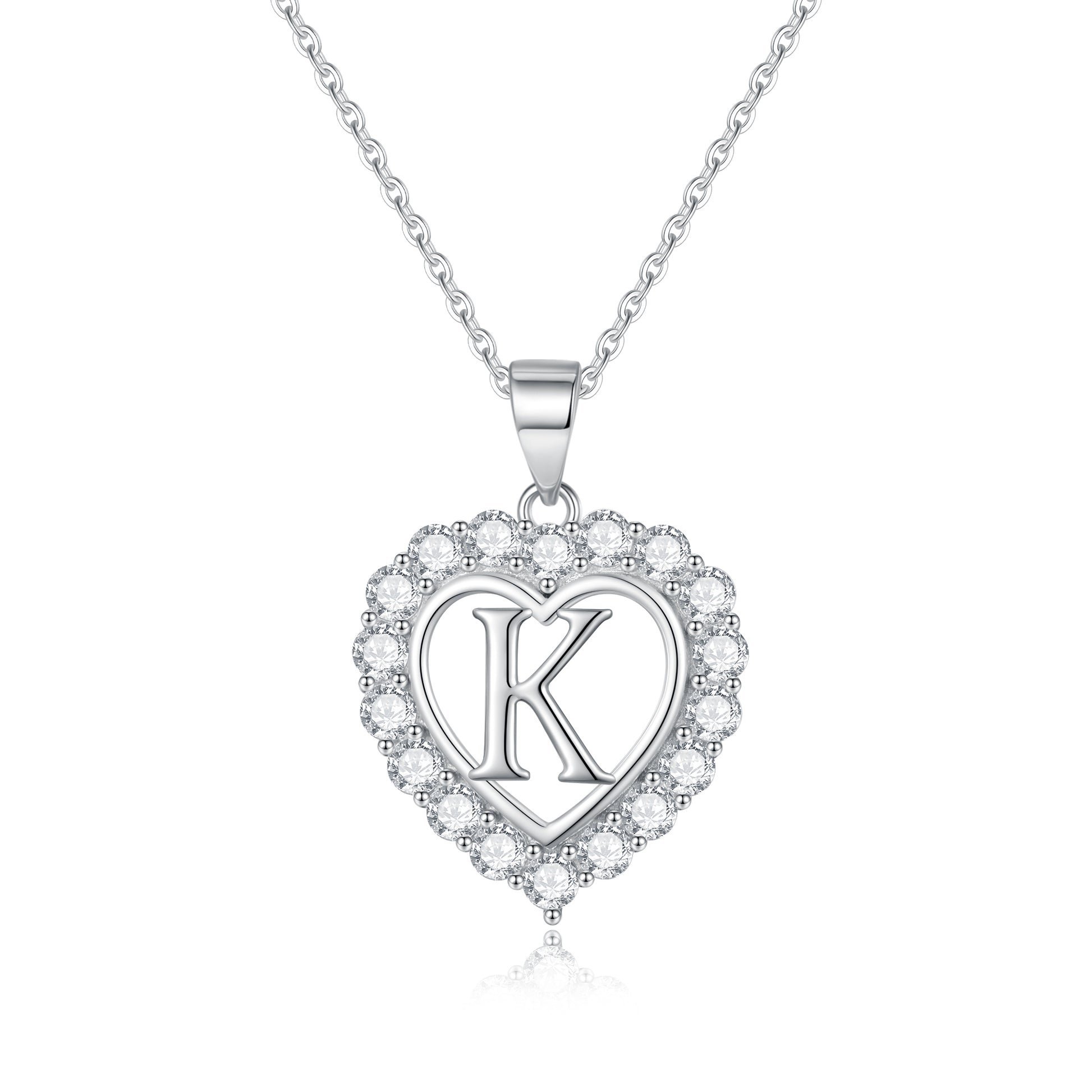 Silvery, heart-shaped zircon initial letter pendant necklace, women's jewelry, a gift for girls;