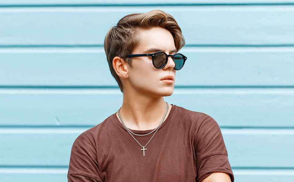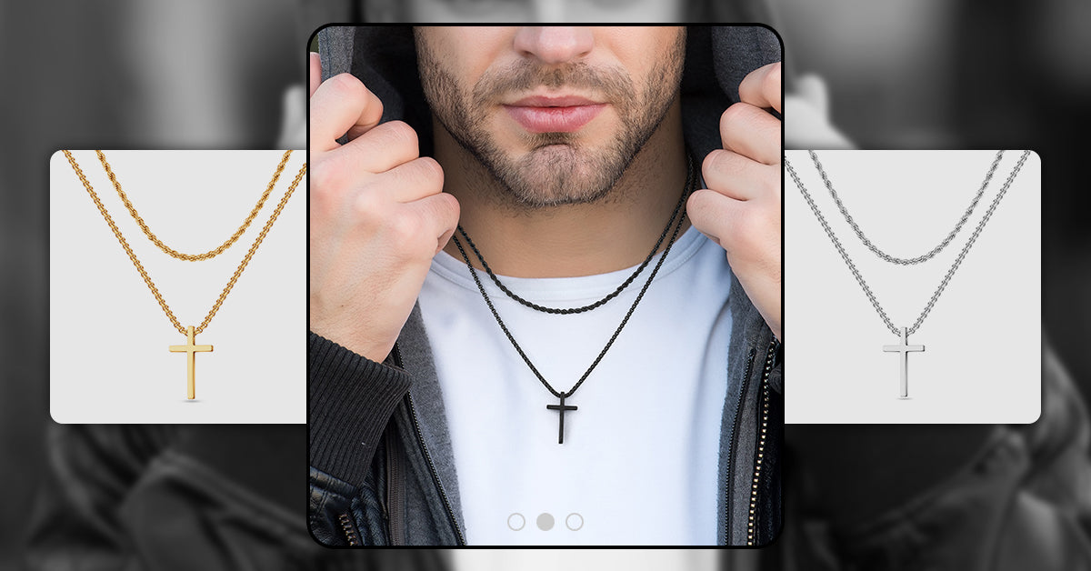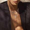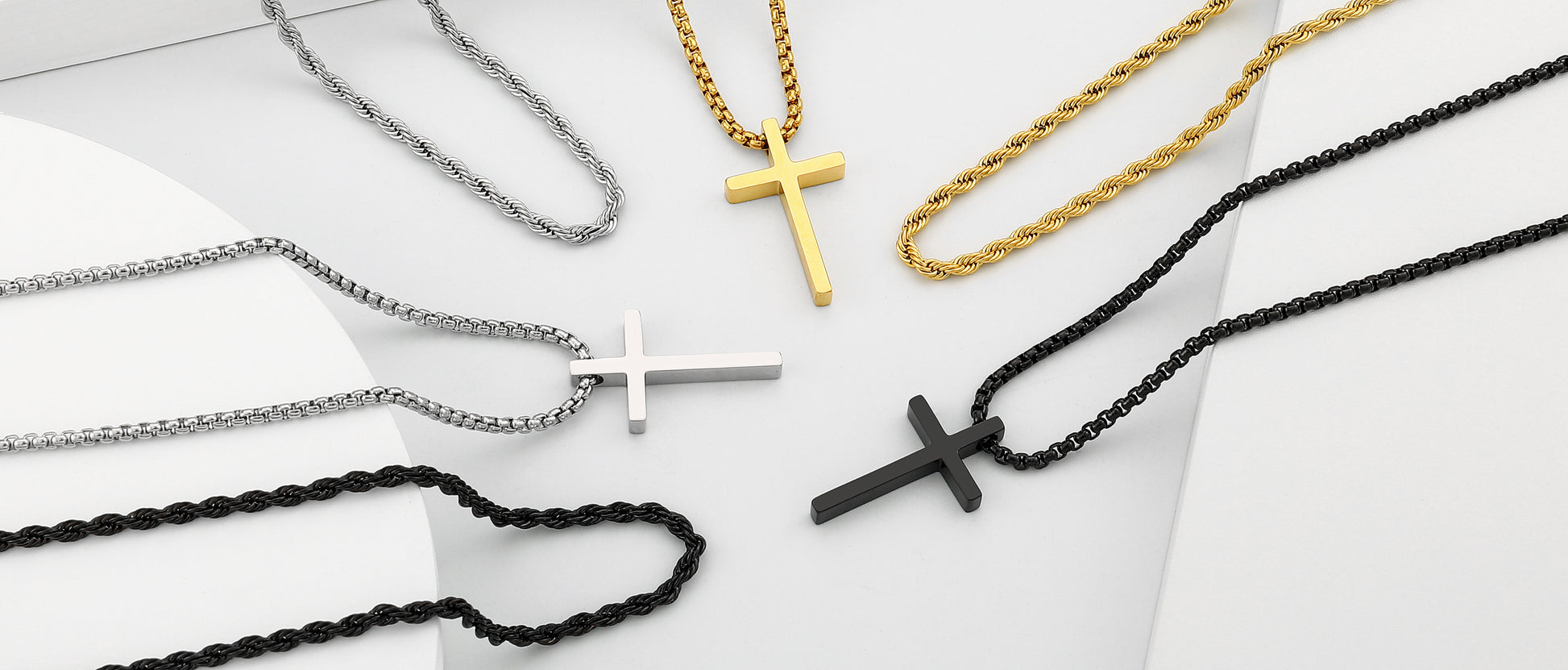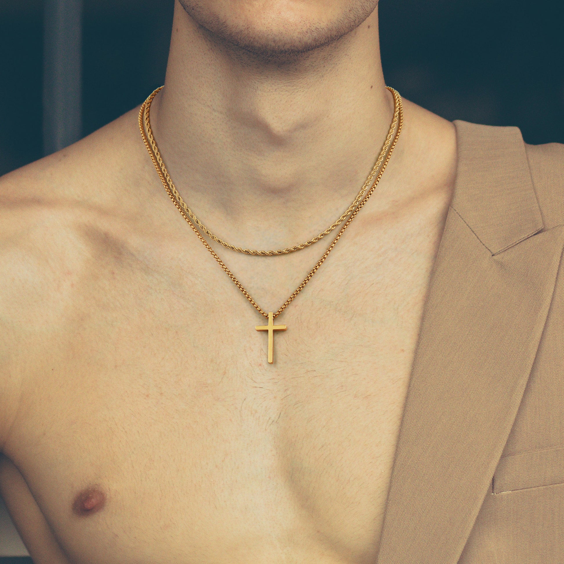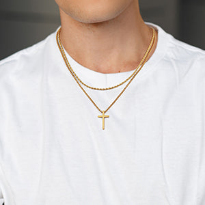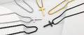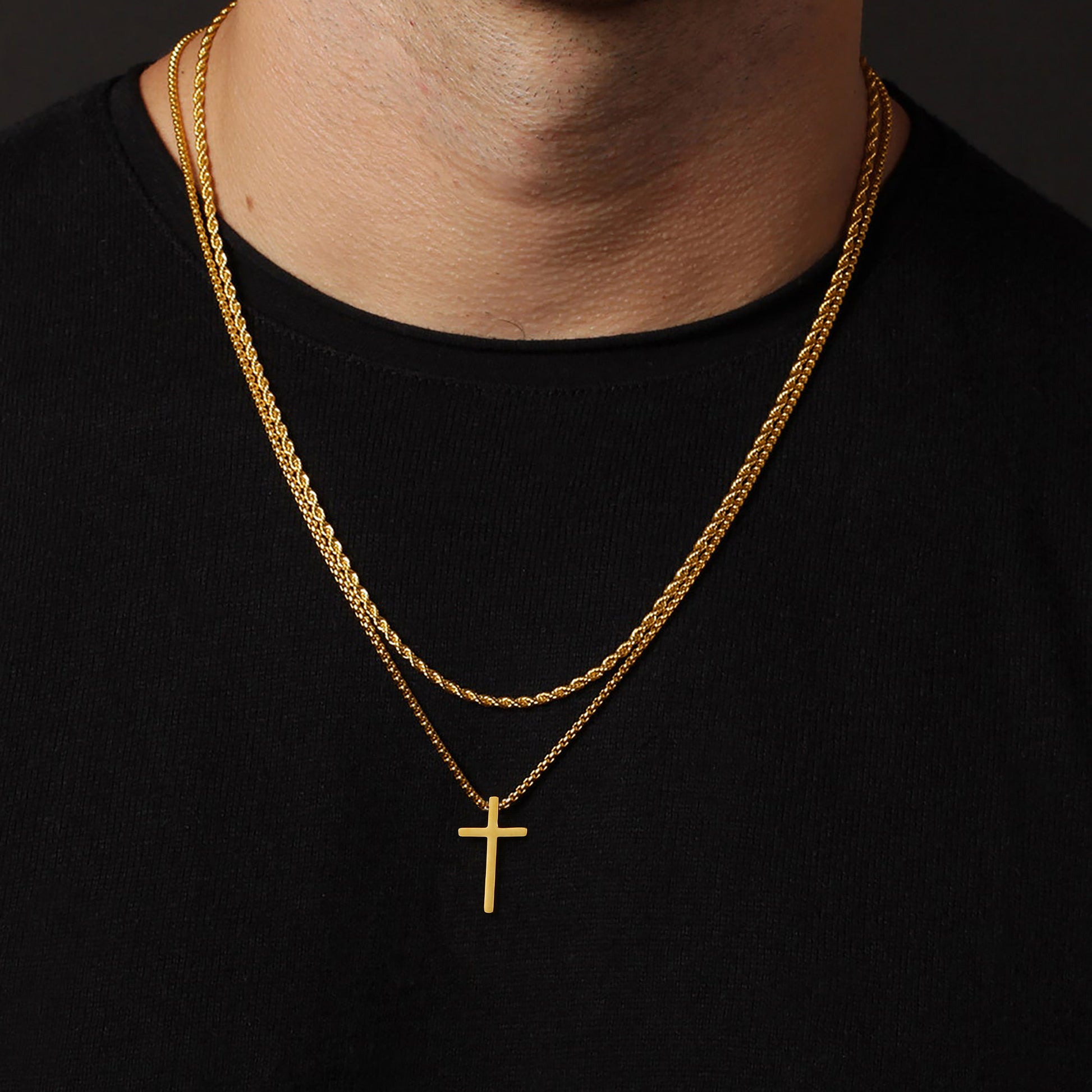 Black/Gloden/Silvery, stainless steel men's cross necklace, layered rope chain box chain cross pendant necklace, 16-24 inches