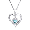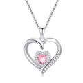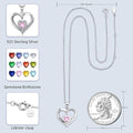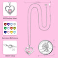 Silvery, women's heart-shaped birthstone necklace, S925 silver plated birthstone necklace, suitable for teenagers and girls, birthday jewelry gift;