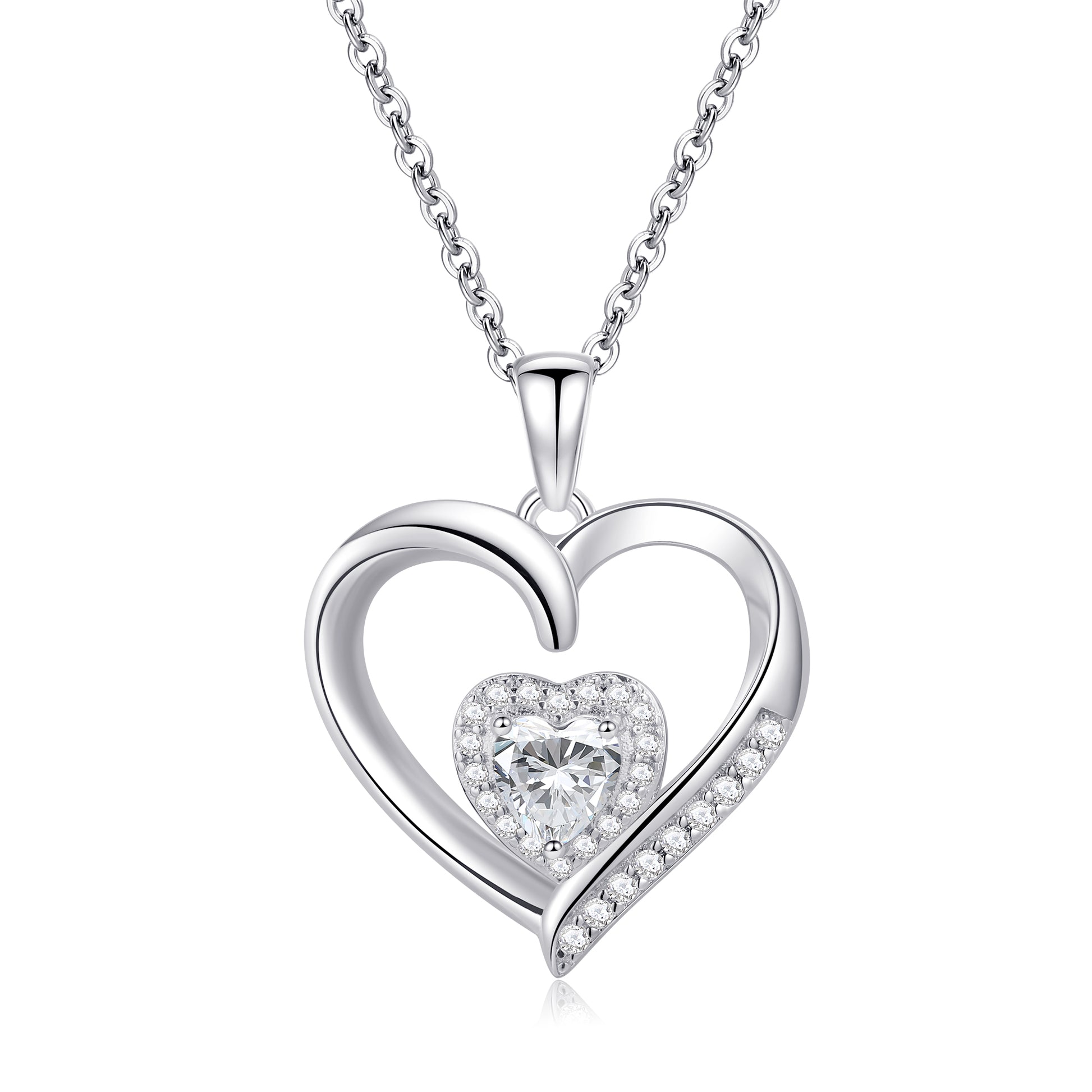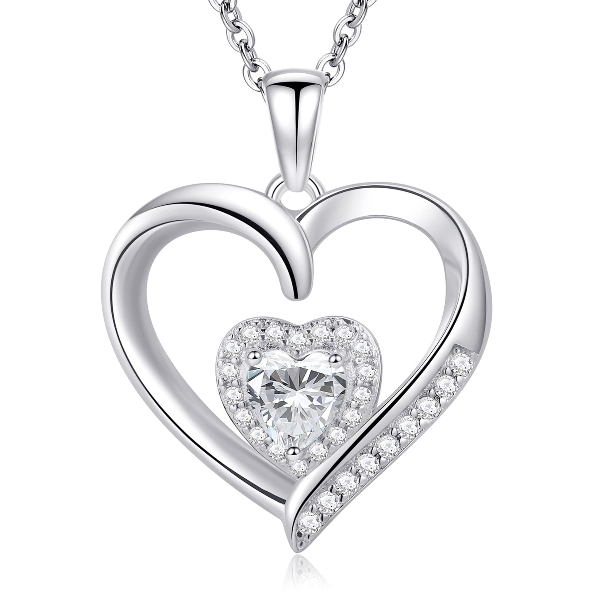 Material: The heart-shaped necklace is made of high S925 silver plating and shiny AAA+cubic zirconia, without nickel, low allergenicity, and does not harm the skin. The silver chain is exquisite but sturdy, it won't break you.
