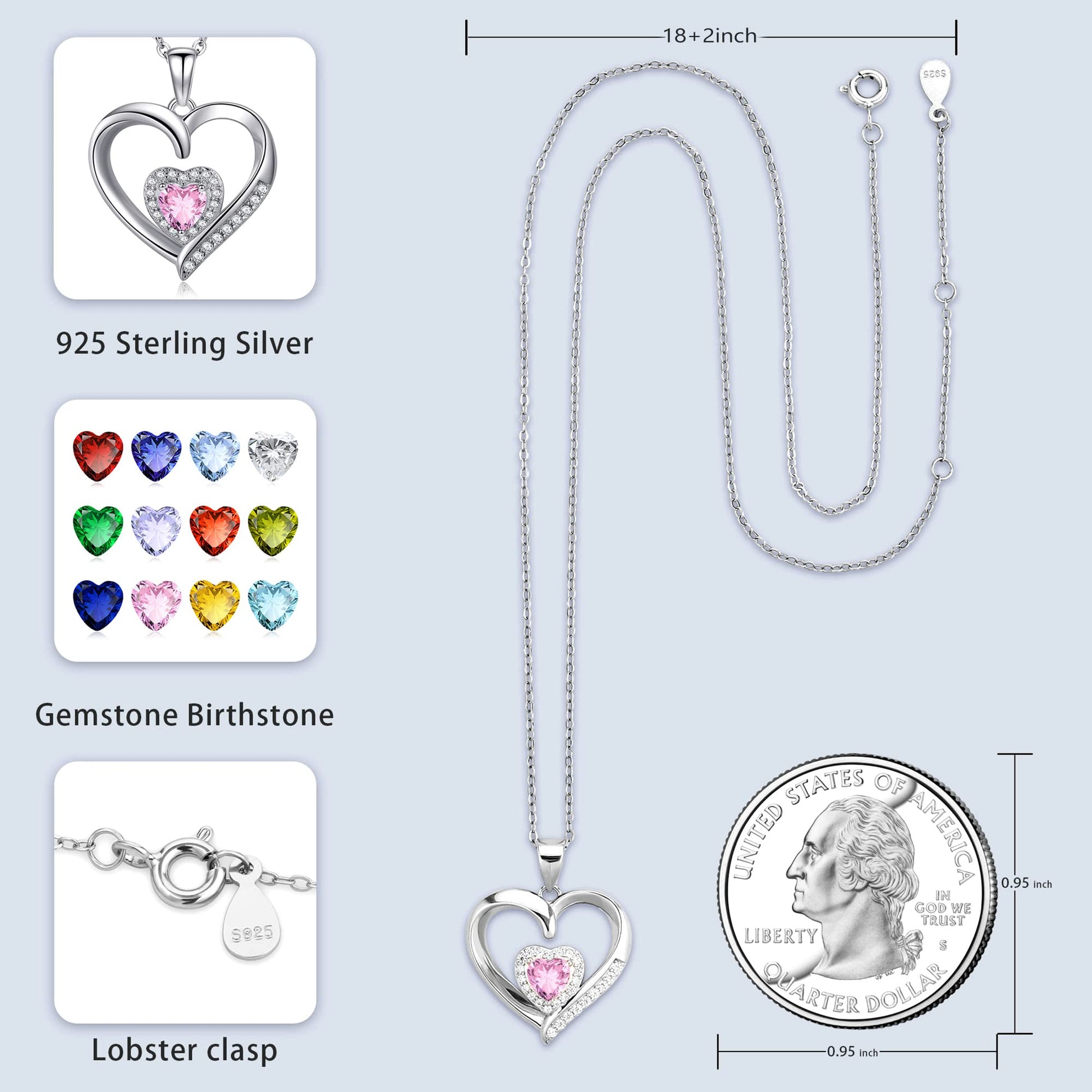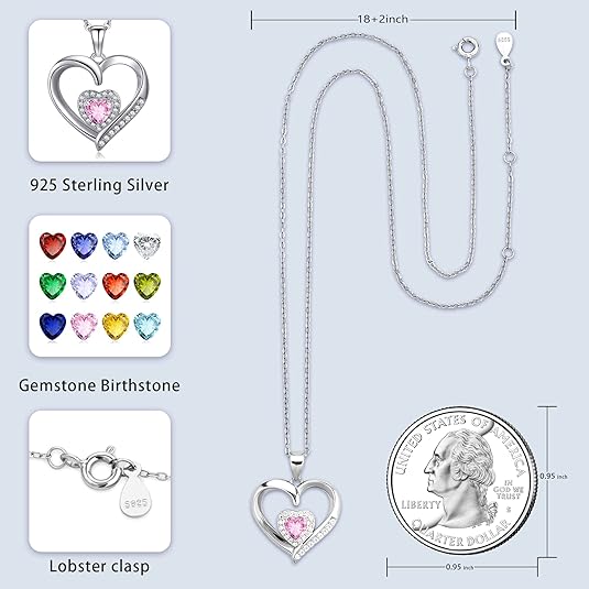 S925 Silver Plated Necklace: The heart-shaped pendant necklace is made of S925 silver plating and features a birthstone. It is a unique and sincere fashion jewelry with exquisite packaging. You can give the silver heart-shaped necklace to you or someone who plays an important role in your life.