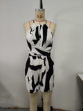 Zebra stripes, sleeveless jumpsuit with hanging neck